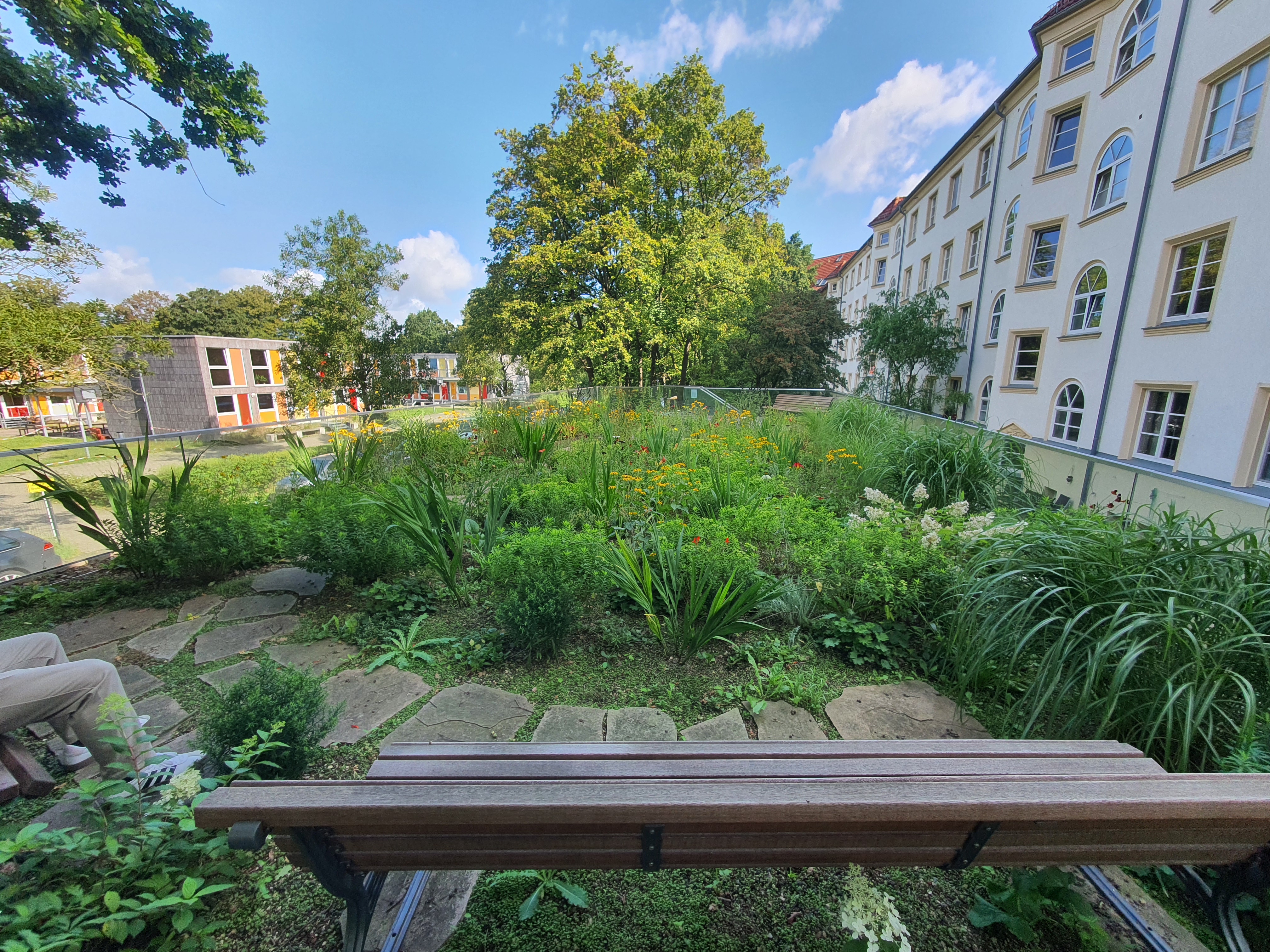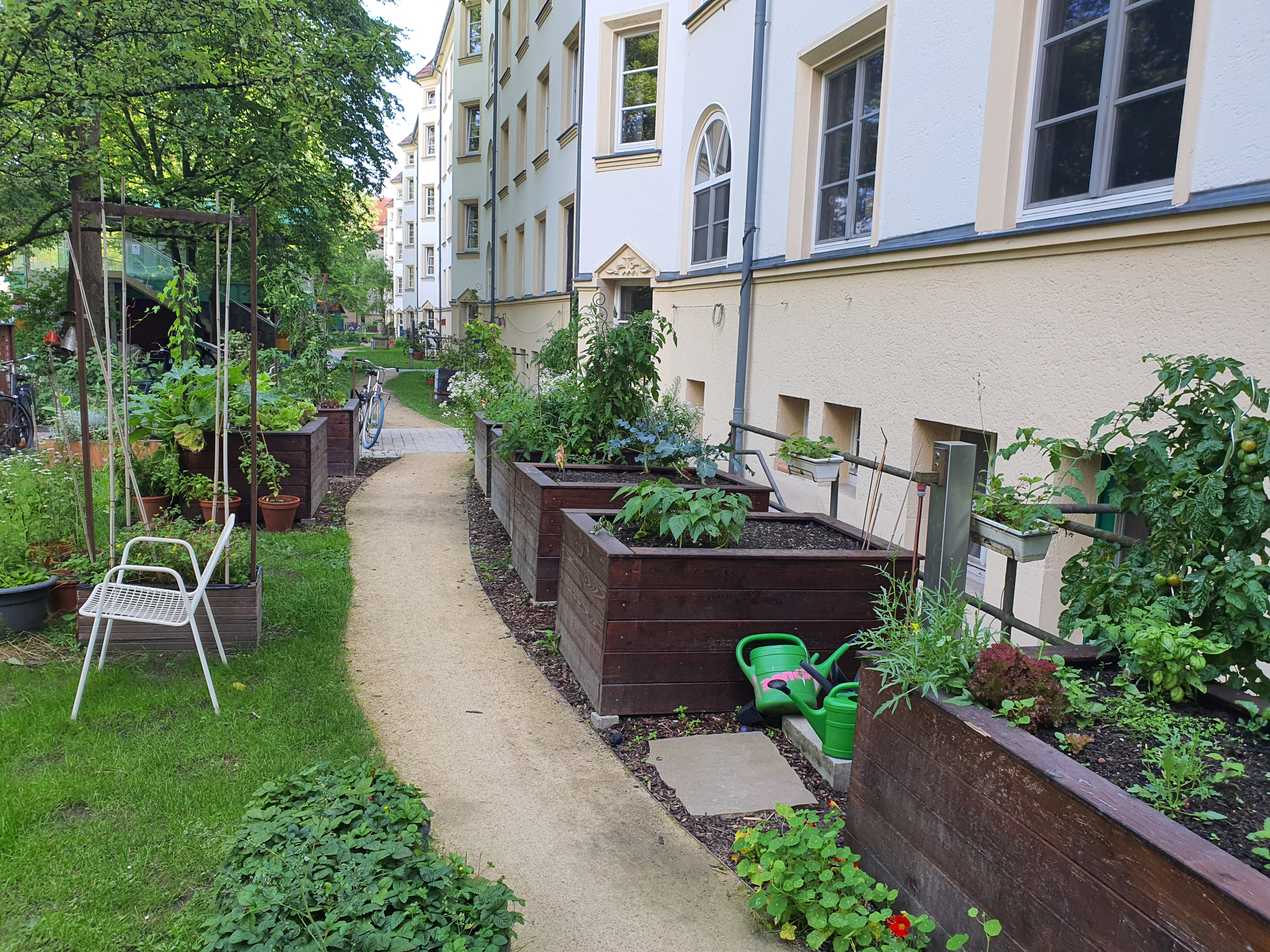 Eigentlich entstand die Idee zu diesem Projekt eher zufällig. Auf einer Veranstaltung zum Thema Urban Farming sprach uns eine Mieterin an, ob es nicht möglich wäre, auf den vorhandenen Garagendächern ein kleines Sonnendeck zu errichten. In der denkmalgeschützten Wohnanlage Steigertahlstr./Limmerstr. im Stadtteil Linden/Limmer ergibt sich so eine Nachfrage fast automatisch aus dem Kontext einer attraktiven Westausrichtung und völliger Balkonlosigkeit.